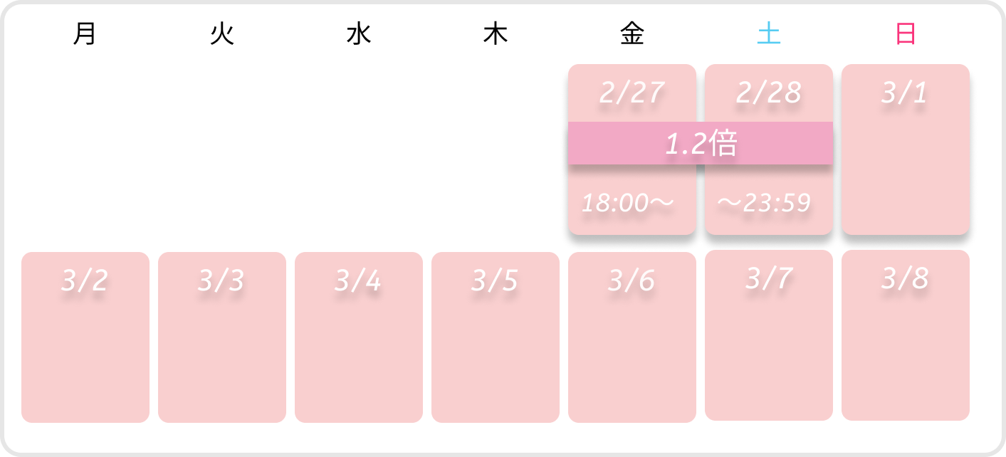 ※対象ルームには、ボーナスデーの翌営業日(3/2(月))23:59までにポイントが加算されます。