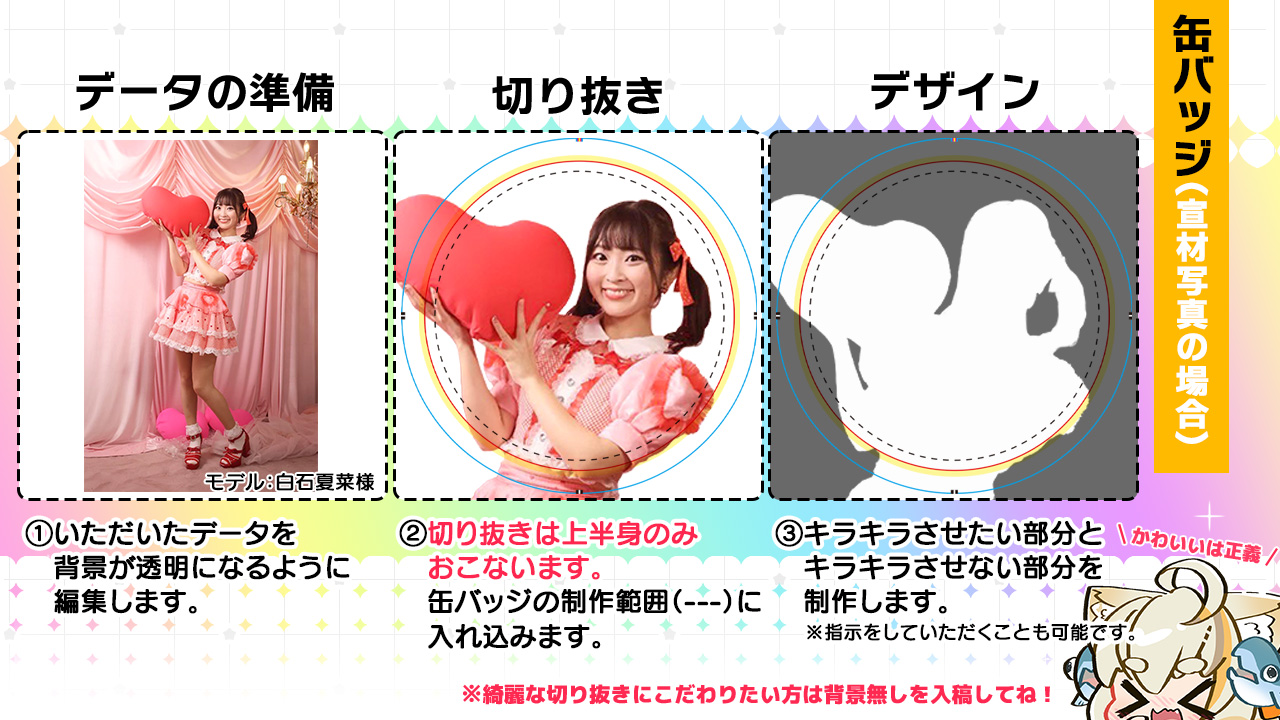 ※綺麗な切り抜きにこだわりたい方は背景無しで入稿をお願いいたします。