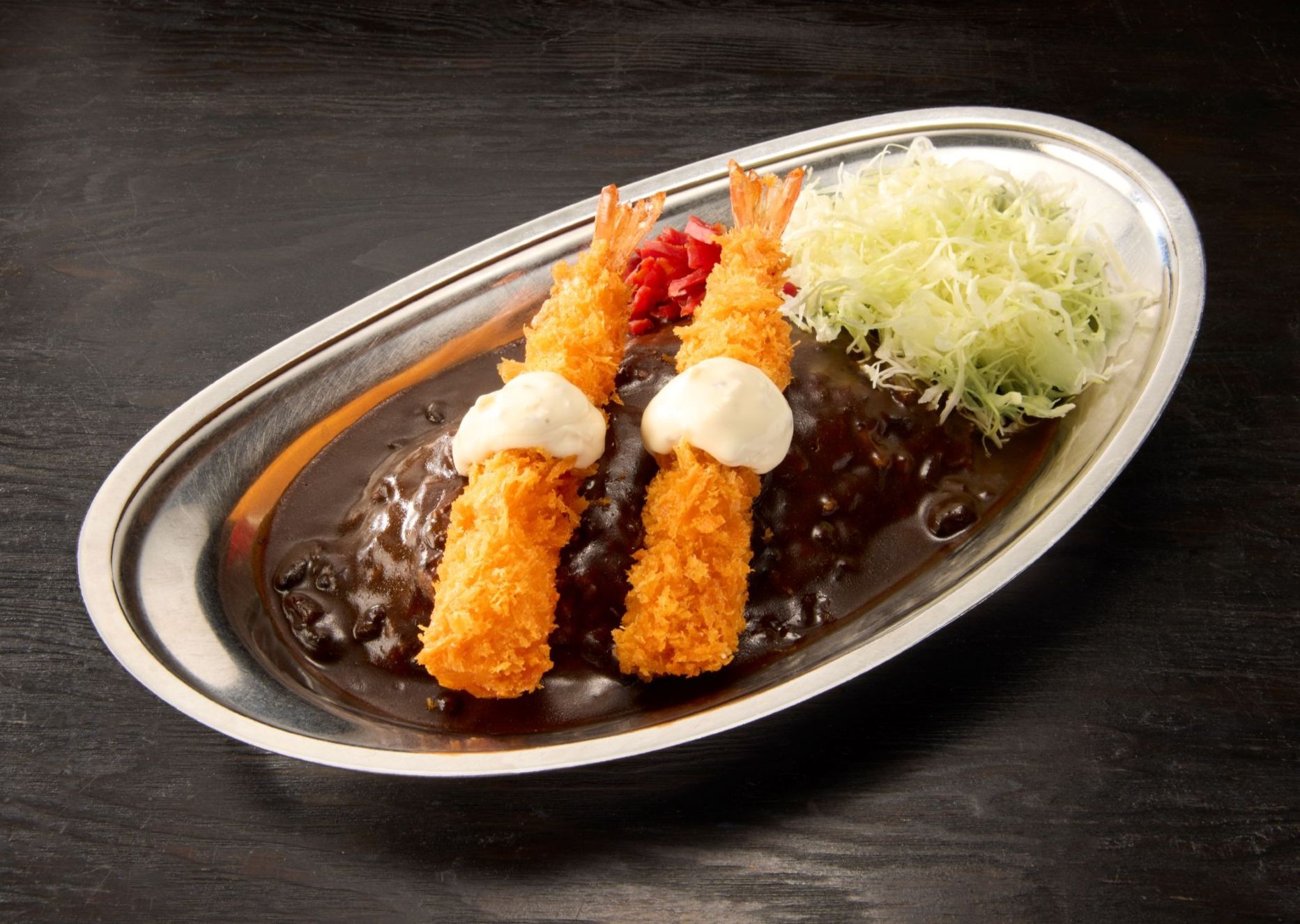 ▼ぷりっぷりのエビフライがのったおすすめメニュー。タルタルソースとの相性もバッチリの「エビフライカレー」