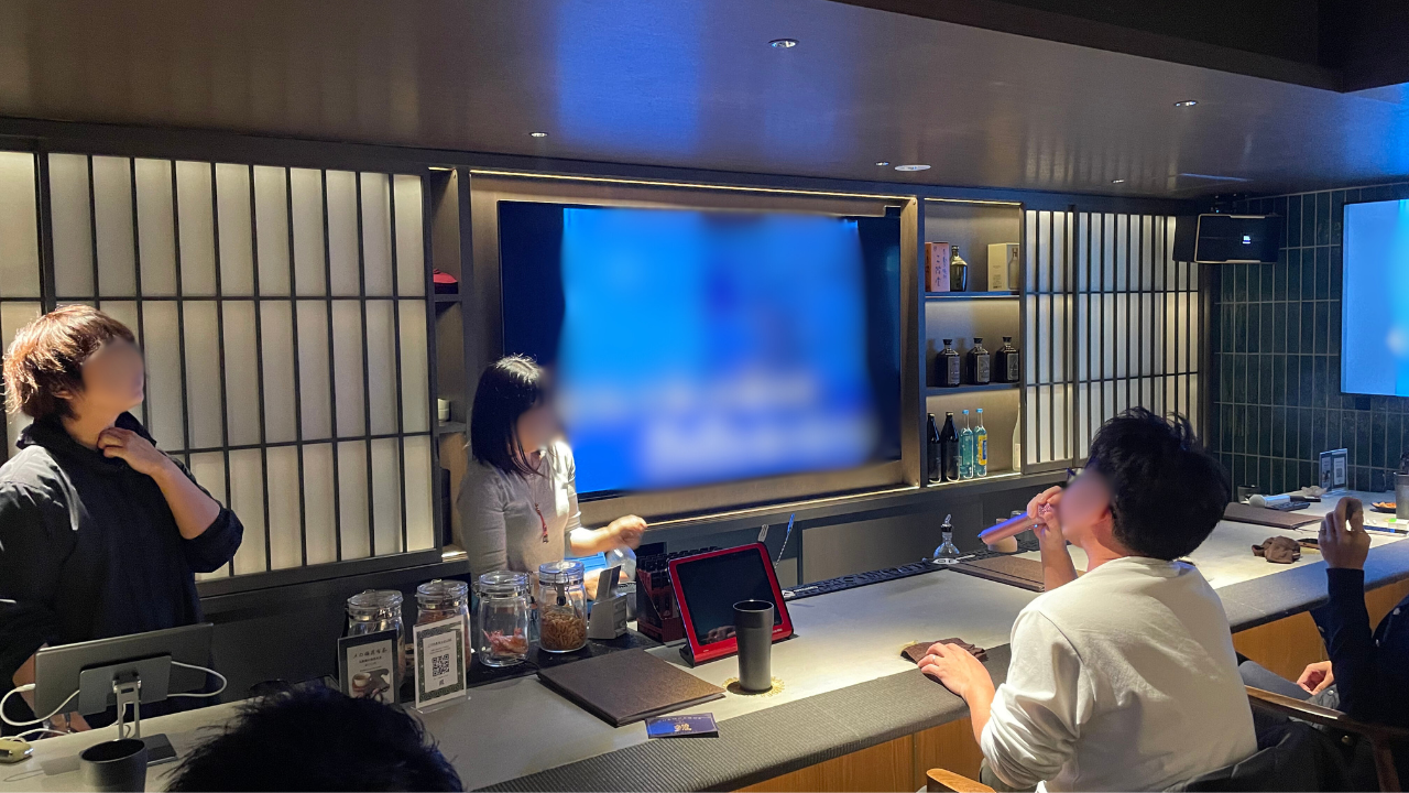 ハモれるスタッフだけで運営する西麻布の本格派カラオケBAR。西麻布でも最高峰の音響設備を揃え、75インチの大画面モニターでカラオケを楽しむことができます。また、「少々行きすぎた和テイスト」を押し出しており、飲み物はお茶割りをメインとしている。各地から仕入れた厳選茶葉に合うお酒を仕入れており、お客さま自身での組み合わせで選べるのが特徴。当日はここでしか手に入らないものをザクザクご用意!!