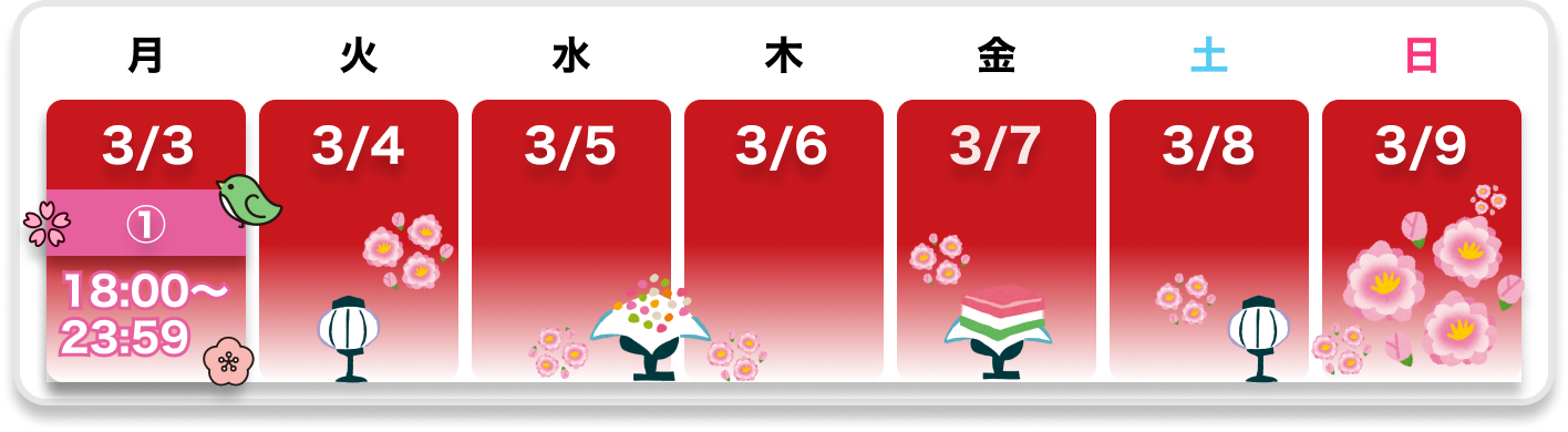 2025/3/3(月) 18:00 〜 2025/3/9(日) 21:59