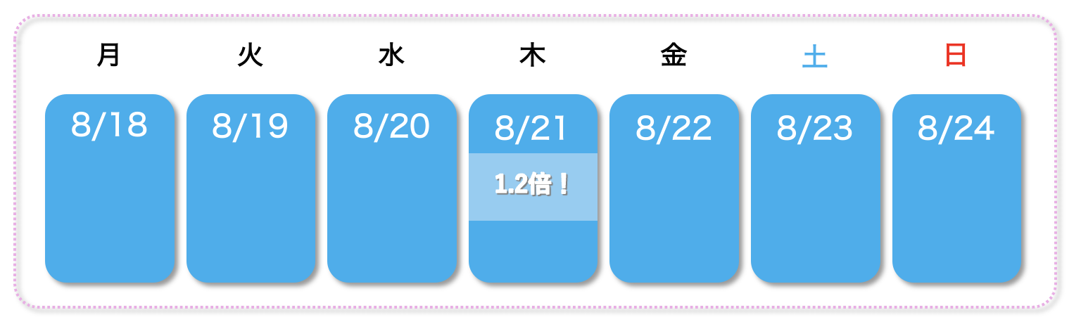 ※対象者には、1.2倍対象日の翌日23:59までにポイント加算いたします。
