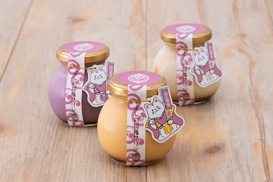 特製のお芋のペーストを混ぜ込むことで濃厚なお芋の甘さが味わえる、とろ~りなめらかなプリンです。お味は紅はるか・紫芋・バニラの3種♪