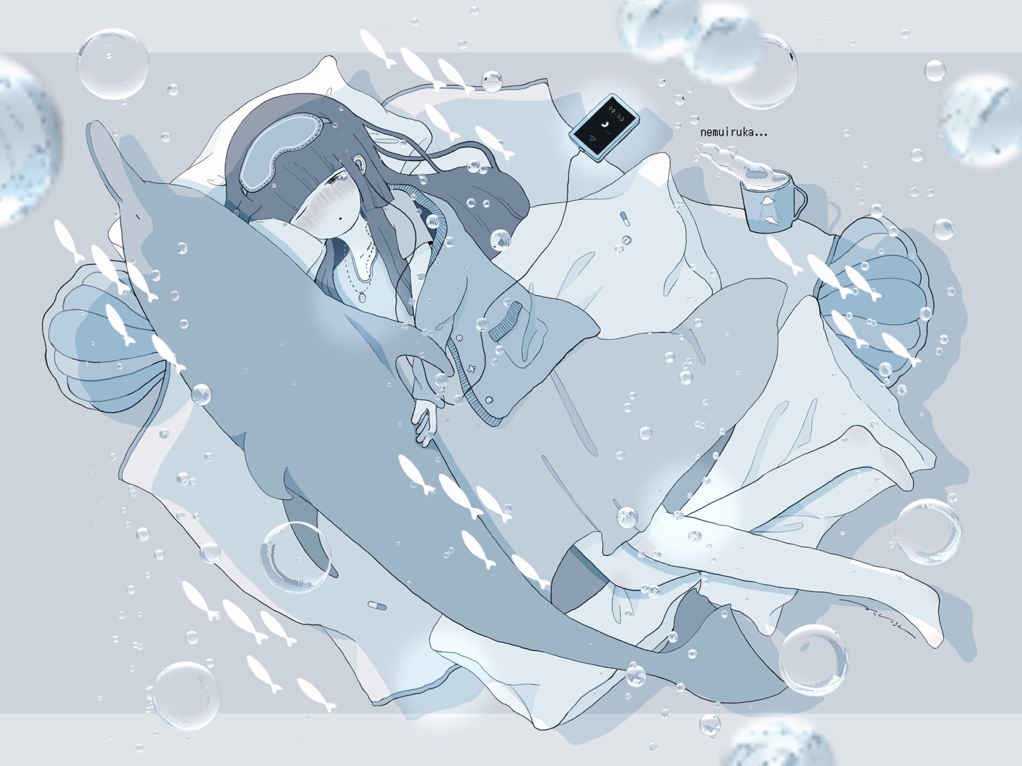 「爽やかに病む」をテーマに、錠剤、天国といった生と死に関係するものを、青を基調とした透明感のある淡い色使いで表現している。