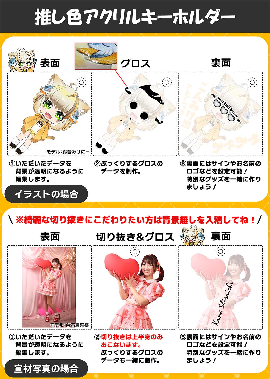 ・ランキング1位の方のみ、「透明素材+ホロクラッシュ加工」の推し色アクリル素材を選択できます。