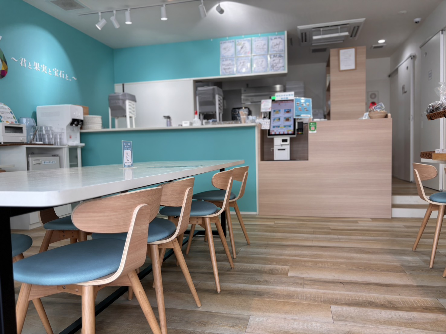 ティファニーブルーを基調とし、艶やかな氷をイメージしたペンダントライトが輝くフォトジェニックな店内では、見た目の華やかさだけでなく、口どけ・余韻・素材の組み合わせまでこだわった、夏でも冬でも食べたくなるかき氷を提供しています。また、店内には江東区住吉にある大人気ブーランジェリー「Dreamin'B」の2号店を併設。柔らかく食べやすいパンからハード系までバラエティに富んだ焼きたてパンが並んでいます♪