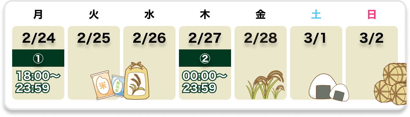 Monday, 24/02/2025 18:00 〜 Sunday, 02/03/2025 21:59