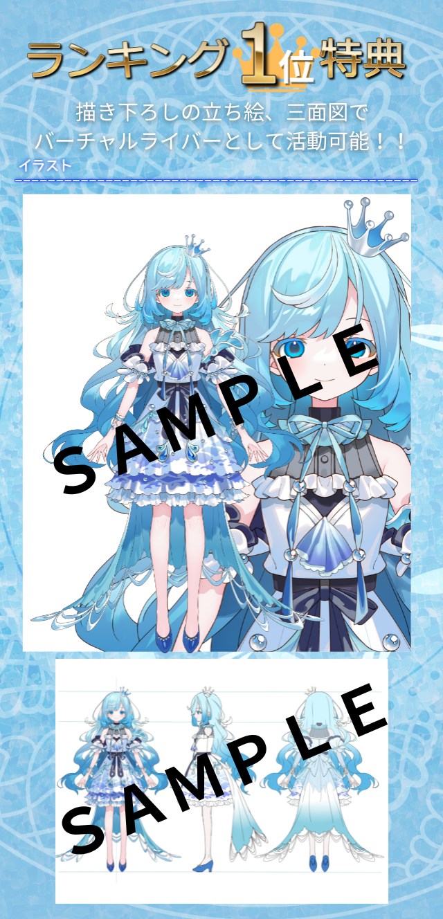 本イベントでランキング1位になった方は、やみや氏描き下ろしの立ち絵、三面図でバーチャルライバーとして活動することもできます!