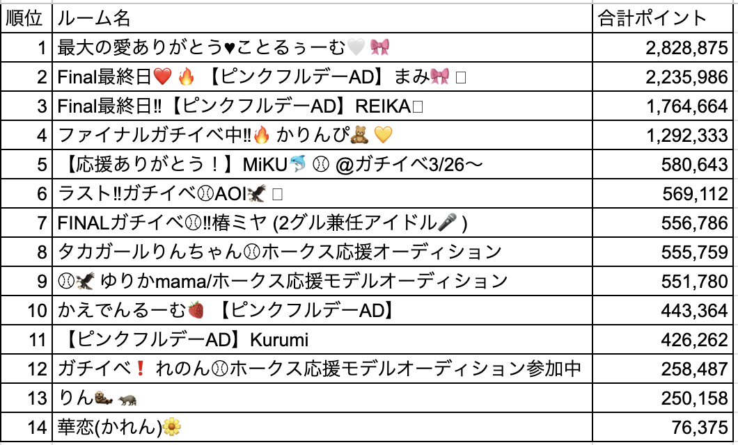 審査員特別賞は、ランキング2位から3位の方を対象にSHOWROOM限定企画『ホークス応援モデルオーディション~ピンクフルデー5/19~』運営チームが配信の様子などを見て決定いたします。