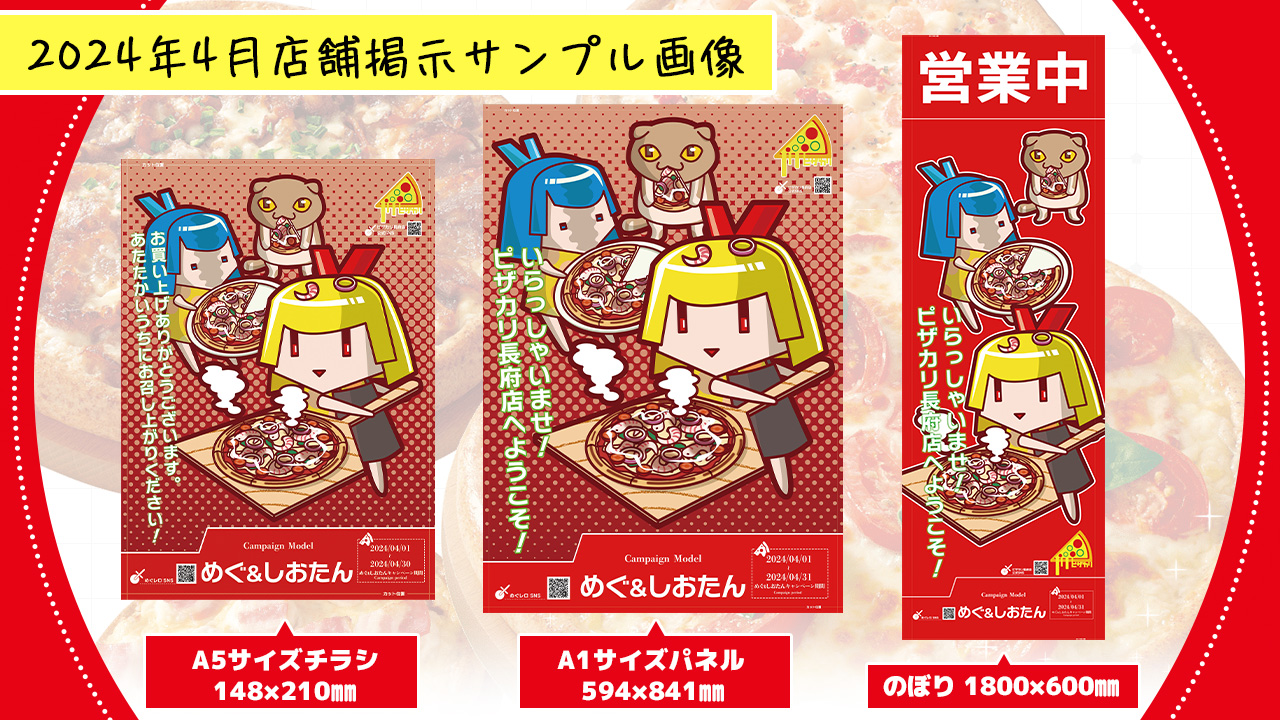 <ピザ・カリフォルニア長府店に設置されるレギュラーサイズののぼり、A1サイズのパネル、A5サイズのチラシ制作権詳細>