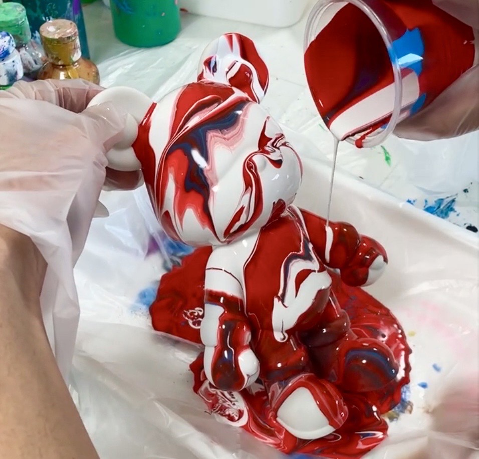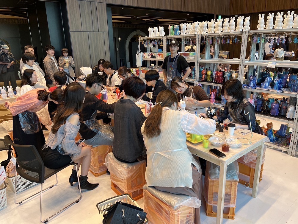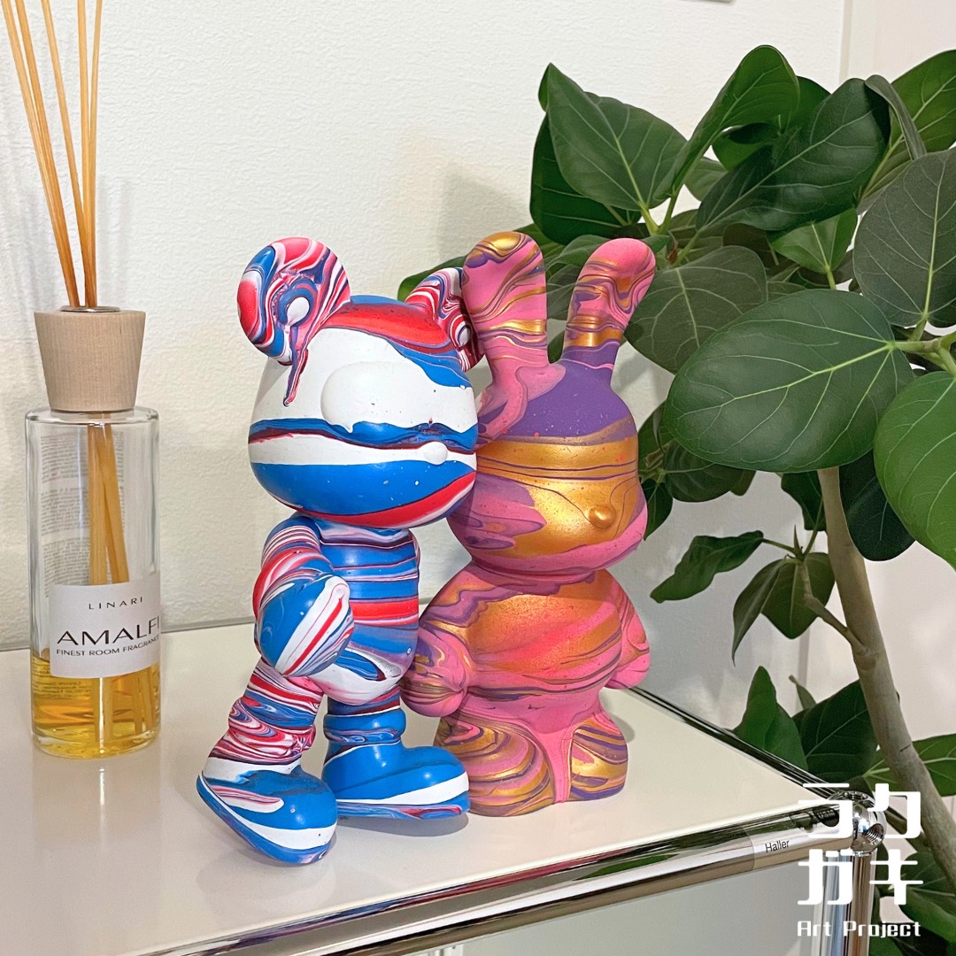 フルイドアート(液体素材を使って表現される現代アートの形態)で世界にひとつだけのフィギュア作り体験ができるアートワークショップです。可愛いフォルムのクマや、うさぎ、犬など数種類のフィギュアからお好きなものを選んで、お好きな色で自由に製作することができます。