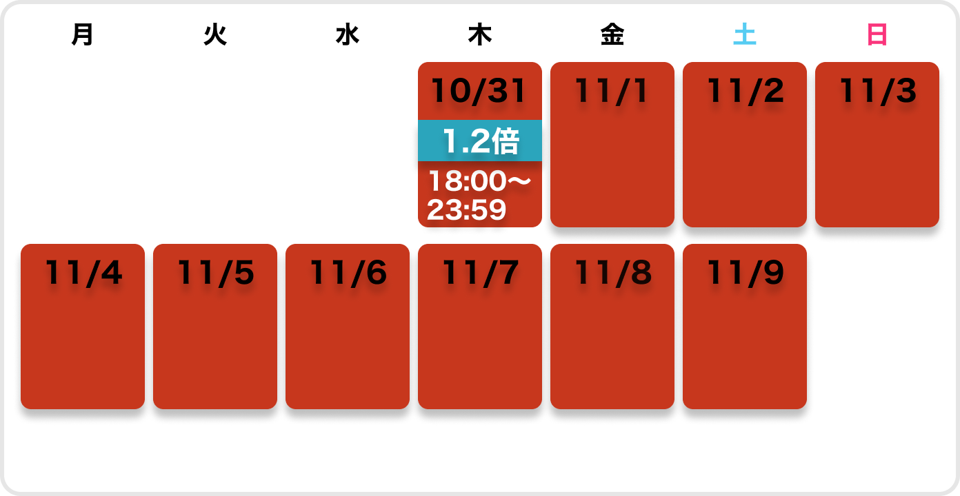 2024/10/31(木)18:00〜2024/11/9(土)21:59