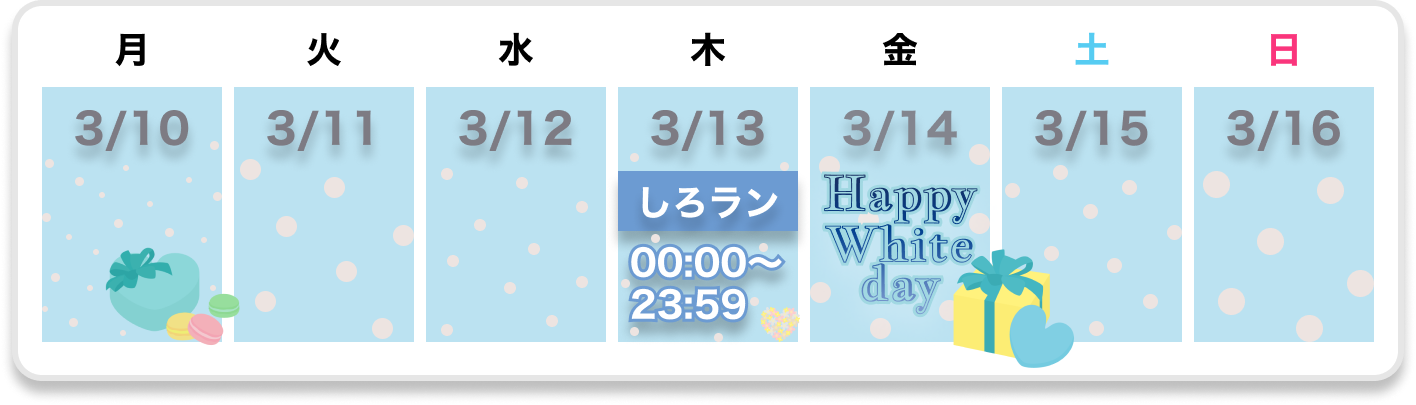 ということで、このイベント期間の1週間はホワイトデーならぬ【ホワイトウィーク】と名付け、
