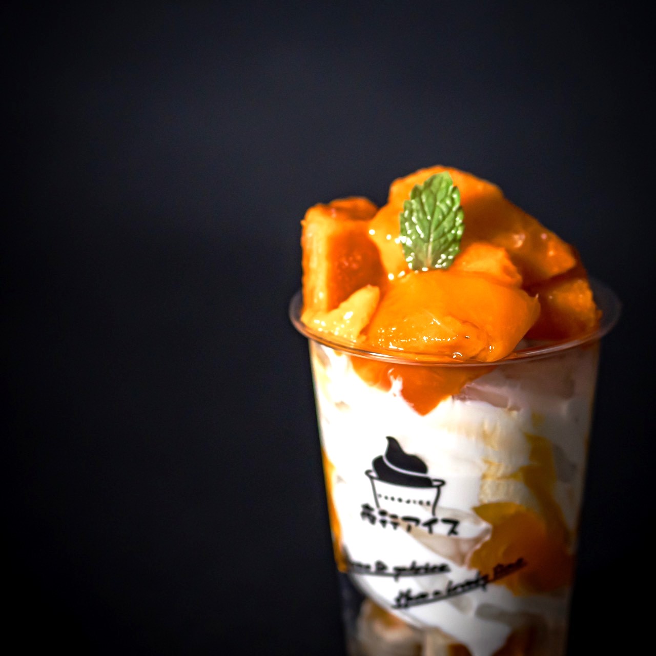「パフェよりもリーズナブルに。ソフトクリームよりも豪華に。」というコンセプトのもと繰り出される同店のアイスは、味はもちろん見た目も楽しめる目移り必至のラインナップ。下層にはコーンフレークではなく、自家製クロッフルを敷いているところも『夜行アイス』の商品の大きな特徴です♪チョコバナナや宇治抹茶といった定番に加え、契約農家から届く桃やシャインマスカットなどの季節限定フレーバーも要チェック☆