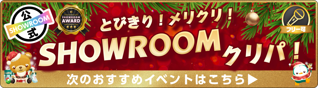 ・本イベントはSHOWROOM株式会社が運営しております。 ・下記注意事項およびSHOWROOM会員規約その他のルールを守って配信しましょう。 ・他者が嫌がるような迷惑行為はしないようにしましょう。 ・審査状況や選考基準に関するお問い合わせには基本的にお答えできかねます。 ・応募・審査通過等によって生じる権利を第三者に譲渡・質入等することはできません。特典の対象は獲得したルームの方のみです。特典を獲得したルームの方以外の方(グループ全体、グループメンバーなど)が特典を実施することは禁止といたします。 ・アバター、ギフティングアイテム等デジタルコンテンツの制作権を獲得された場合、SHOWROOM株式会社が作成する[ガイドライン]・[利用規約]に準じている作品の制作をお願いいたします。これらに違反している場合は、獲得したコンテンツをご利用いただけませんので十分ご注意ください。 ・本注意事項およびSHOWROOM会員規約その他のルールに違反した場合またはその他当社が不適切であると判断した場合は、応募及び結果を無効とし、または取り消す場合があります。 ・応募条件を全て満たさずにエントリーされた場合には、いかなる理由であってもエントリーを取り消し、特典の権利を無効とさせていただく可能性があります。 ・バーチャルライバーに関しては各人の世界観により定義された性別です。 ・イベントを途中離脱された場合には、いかなる理由であっても特典の権利を無効とさせていただきます。該当のライバーにギフティングされたリスナーへの返還、返金等もいたしかねますので、予めご了承ください。 ・金銭、物品、その他プレゼント(チェキ、お礼カードは除く)を視聴者に贈り応援を促進させる行為は禁止します。 ・重複アカウントによる応援は禁止です。重複アカウントによる応援ポイント分は発覚次第、減算を行います。なお、当サービスのセキュリティ上、対応や減算の仕組みの詳細に関しましては個別にご案内を差し上げておりません。予めご了承ください。 ・本アプリ内で開催されるキャンペーン・イベント・コンテスト等にアップル社、グーグル社は一切関係ありません。 ・天災、不慮の事故などのやむを得ない事情により特典履行が行えない場合、特典が変更・補填・中止となることがございます。予めご了承ください。 ・万が一、前項に定める事由による特典履行が変更、中止となった場合、その他本イベントの応援ポイントが取り消しされた場合であっても、SHOWROOM株式会社は当該応援ポイントにかかるデジタルコンテンツまたはShow Gold、現金その他の返還はいたしません。予めご了承ください。 ・イベント終了後に減算されてポイント未達成になった場合、特典は取り消しとさせていただく場合があります。 ・ランキングが関わるイベントの場合、グループメンバー同士(グループアカウント、個人アカウント問わず)、または、イベント参加者の関係者(マネージャー・プロデューサーなどの直接的な利害関係者)の応援はコメントのみ可能とし、有料ギフト・無料ギフトによる応援は禁止とさせていただきます。 ・公式ライバーの方が報酬のある特典を獲得された場合は、所属オーガナイザー・所属事務所等にご確認の上ご対応ください。