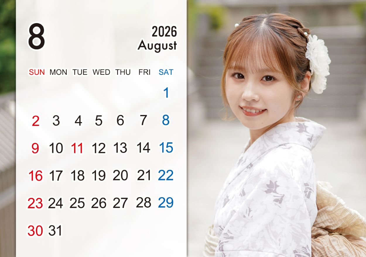 ①オリジナル卓上カレンダーに使用する写真は、上記撮影特典実施の際に撮影させていただきます。もちろんご自身で所有されているお写真もお使いいただけます。