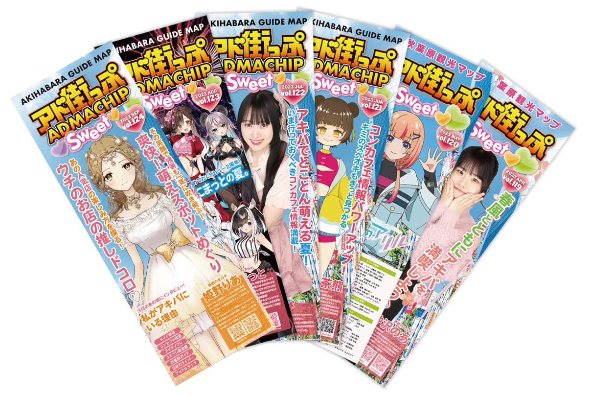 アトレ秋葉原、秋葉原ラジオ会館、AKIBAカルチャーズZONE、ボークス秋葉原ホビー天国2、GiGO、ソフマップ、コトブキヤといった秋葉原の主要スポットをはじめ、秋葉原全域160ヶ所以上にて設置・配布している秋葉原の観光ガイドマップです。現在、ホビーショップ・飲食店舗・アニメ/ゲームコンテンツなどを中心にご紹介する「PREMIUM」版と、メイド・コンセプト喫茶・ライバー情報などを中心にご紹介する「Sweet」版を、毎月10日に計6万部発行しております。