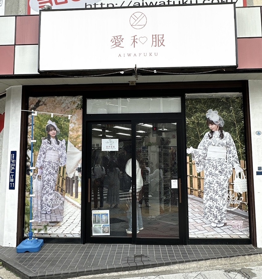 ③あなたが主役の宣伝のぼり(縦180㎝×横60㎝)を制作し、『浅草愛和服』1号店・2号店・3号店、『京都愛和服』伏見稲荷店・祇園四条店・京都駅前店・嵐山渡月橋店・清水寺店・清水八坂の塔店の店頭に設置いたします。