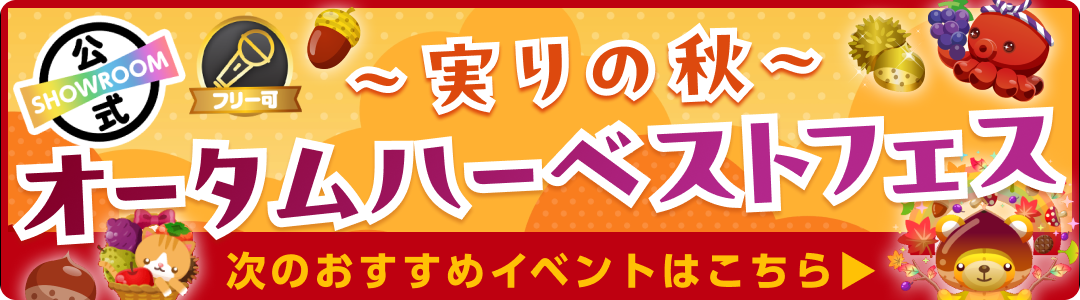 ・本イベントはSHOWROOM株式会社が運営しております。 ・下記注意事項およびSHOWROOM会員規約その他のルールを守って配信しましょう。 ・他者が嫌がるような迷惑行為はしないようにしましょう。 ・審査状況や選考基準に関するお問い合わせには基本的にお答えできかねます。 ・応募・審査通過等によって生じる権利を第三者に譲渡・質入等することはできません。特典の対象は獲得したルームの方のみです。特典を獲得したルームの方以外の方(グループ全体、グループメンバーなど)が特典を実施することは禁止といたします。 ・アバター、ギフティングアイテム等デジタルコンテンツの制作権を獲得された場合、SHOWROOM株式会社が作成する[ガイドライン]・[利用規約]に準じている作品の制作をお願いいたします。これらに違反している場合は、獲得したコンテンツをご利用いただけませんので十分ご注意ください。 ・本注意事項およびSHOWROOM会員規約その他のルールに違反した場合またはその他当社が不適切であると判断した場合は、応募及び結果を無効とし、または取り消す場合があります。 ・応募条件を全て満たさずにエントリーされた場合には、いかなる理由であってもエントリーを取り消し、特典の権利を無効とさせていただく可能性があります。 ・バーチャルライバーに関しては各人の世界観により定義された性別です。 ・イベントを途中離脱された場合には、いかなる理由であっても特典の権利を無効とさせていただきます。該当のライバーにギフティングされたリスナーへの返還、返金等もいたしかねますので、予めご了承ください。 ・金銭、物品、その他プレゼント(チェキ、お礼カードは除く)を視聴者に贈り応援を促進させる行為は禁止します。 ・重複アカウントによる応援は禁止です。重複アカウントによる応援ポイント分は発覚次第、減算を行います。なお、当サービスのセキュリティ上、対応や減算の仕組みの詳細に関しましては個別にご案内を差し上げておりません。予めご了承ください。 ・本アプリ内で開催されるキャンペーン・イベント・コンテスト等にアップル社、グーグル社は一切関係ありません。 ・天災、不慮の事故などのやむを得ない事情により特典履行が行えない場合、特典が変更・補填・中止となることがございます。予めご了承ください。 ・万が一、前項に定める事由による特典履行が変更、中止となった場合、その他本イベントの応援ポイントが取り消しされた場合であっても、SHOWROOM株式会社は当該応援ポイントにかかるデジタルコンテンツまたはShow Gold、現金その他の返還はいたしません。予めご了承ください。 ・イベント終了後に減算されてポイント未達成になった場合、特典は取り消しとさせていただく場合があります。 ・ランキングが関わるイベントの場合、グループメンバー同士(グループアカウント、個人アカウント問わず)、または、イベント参加者の関係者(マネージャー・プロデューサーなどの直接的な利害関係者)の応援はコメントのみ可能とし、有料ギフト・無料ギフトによる応援は禁止とさせていただきます。 ・公式ライバーの方が報酬のある特典を獲得された場合は、所属オーガナイザー・所属事務所等にご確認の上ご対応ください。