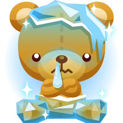 冷房に当たりすぎて凍えてしまい、半分氷になってしまったクマ。
