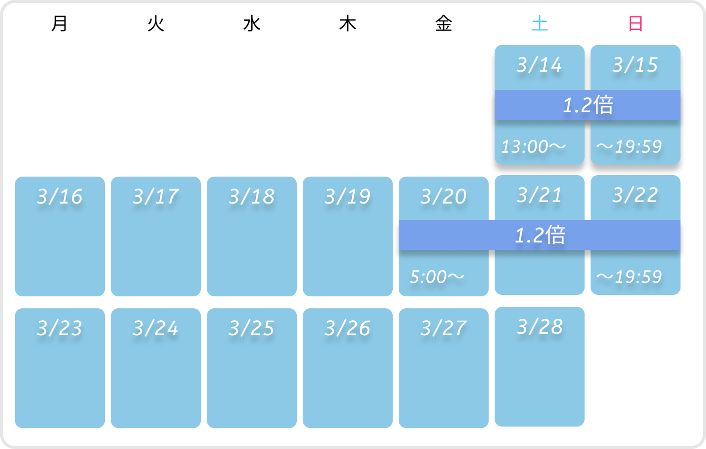 ※上記の加算ポイントは累計ではなく、最終的に達成した日数のポイントのみが加算されます。