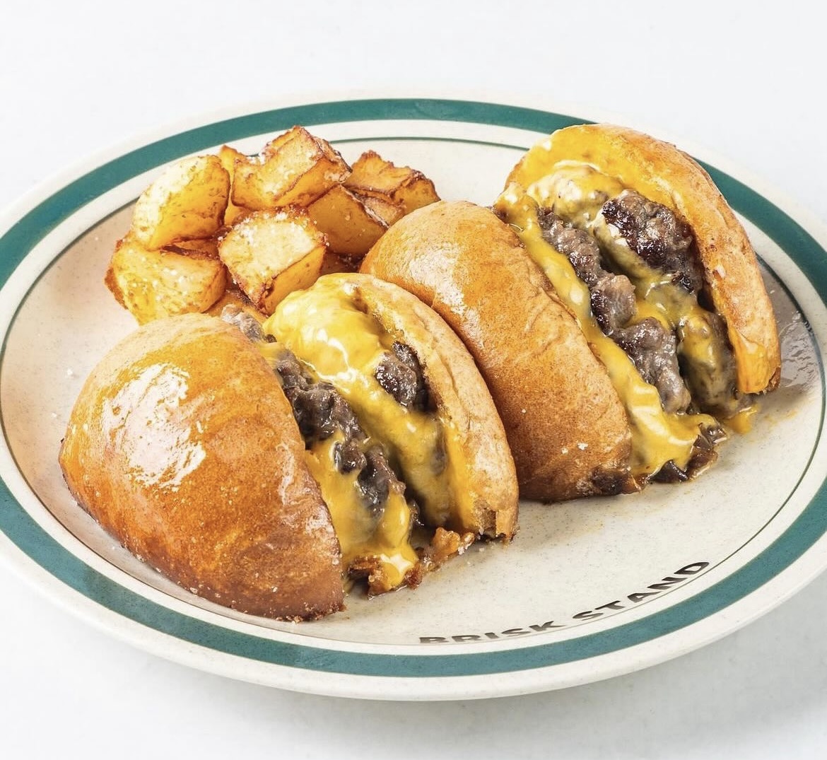 そして、数あるこだわりメニューの中でも、他に類を見ない手法で作る「切ったやつ」は、『BRISK STAND』の名物となっています。ハンバーガーを縦に切り、その断面を熱々の鉄板で二度焼きすることで、パティや具材に肉汁をしっかりと吸わせる超逸品。お店の開店前からこの「切ったやつ」を求めて列ができることも珍しくありません。思わず写真を撮りたくなる斬新な見た目に、断面の食感と香ばしさ。ぜひその目で、その舌でお確かめください。