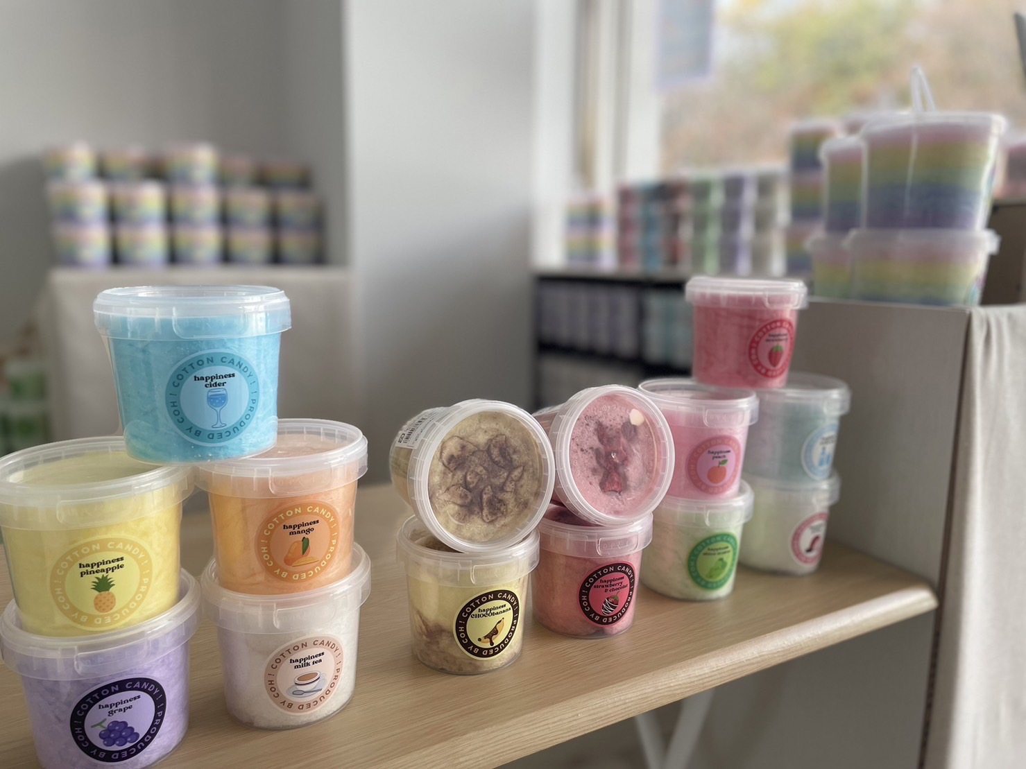 独自の製造方法で、雪どけのような口どけ感とフワフワの繊細さにこだわりを持った13種類のコットンキャンディ(オーロラ、ストロベリー、シャインマスカット、グレープ、マンゴー、パイナップル、ピーチ、ライチ、サイダー、ホワイトソーダ、ミルクティー、チョコバナナ、ストロベリー&ショコラ)を販売しています。