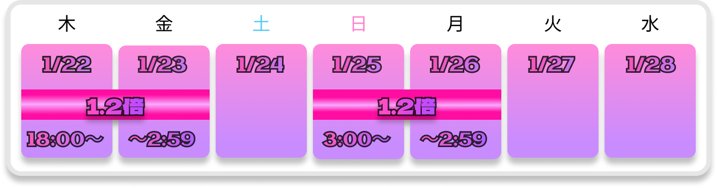 ※対象者には、1.2倍対象日の翌営業日23:59までにポイント加算いたします。