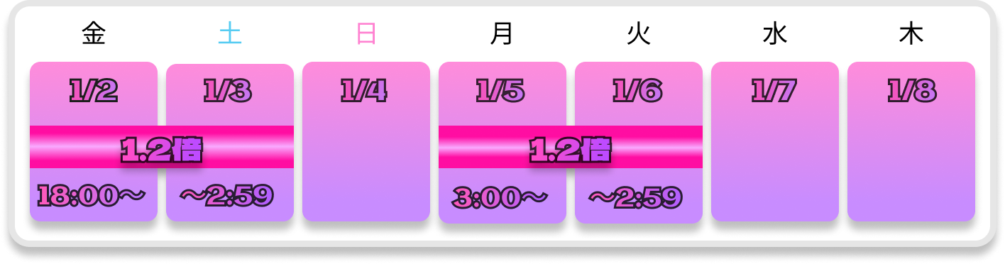 ※対象者には、1.2倍対象日の翌営業日23:59までにポイント加算いたします。