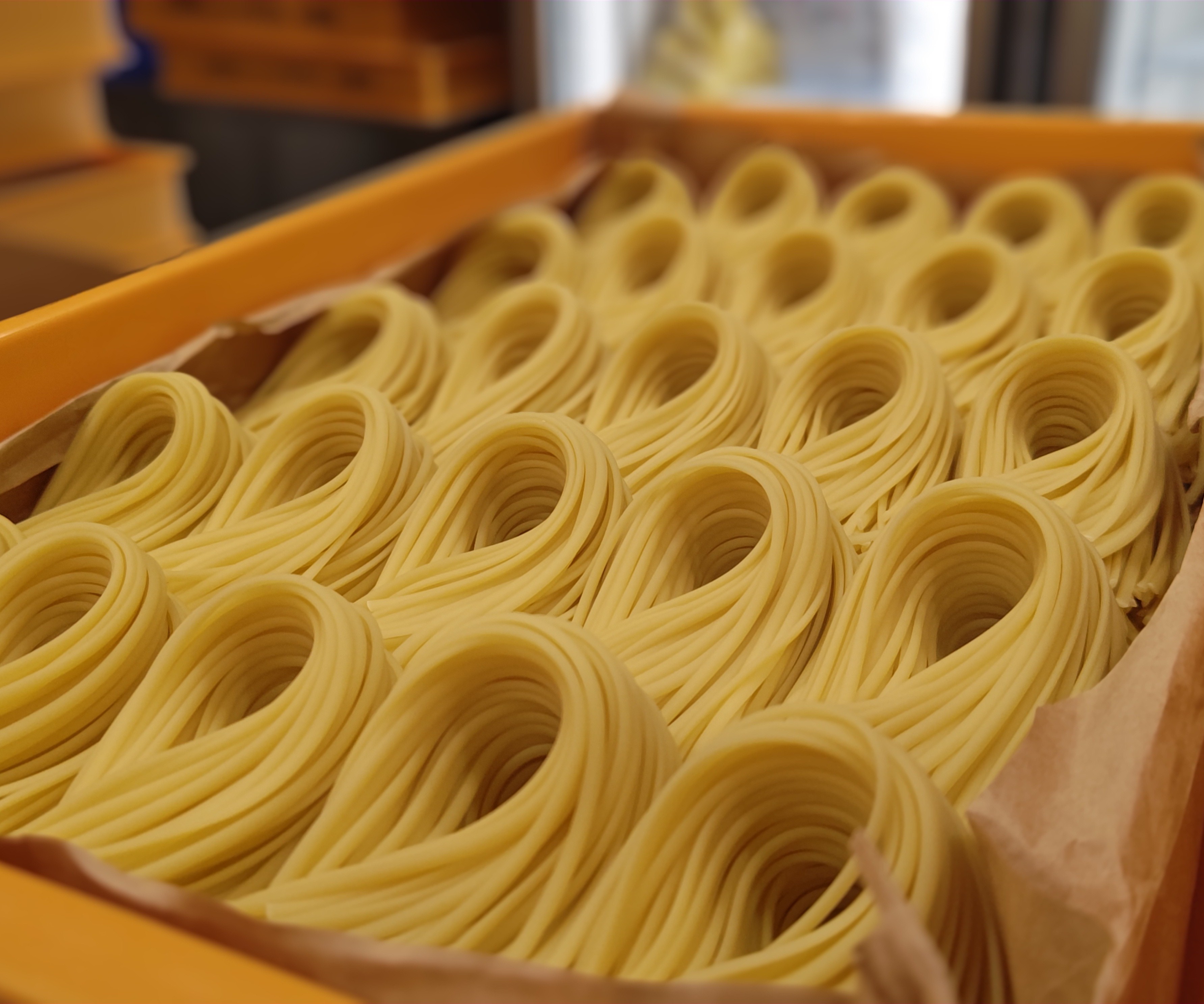 店内に併設された製麺所で作られるパスタは、北海道産のゆめちからと兵庫県産のデュラム小麦を使用。さまざまなソースや食材との相性を考慮したモチモチ食感とふくよかな小麦の香りを生み出しています。