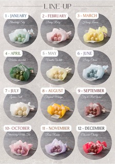 そんな理由で、誕生月をテーマにした「12色のブーケ」を準備しました。