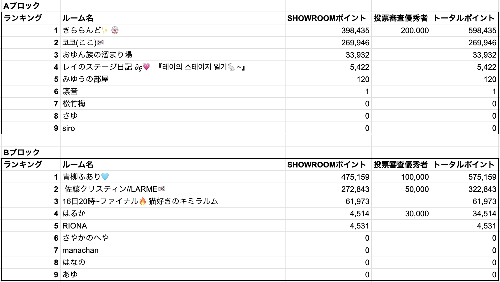 SHOWROOM配信での獲得ポイントに順位に応じたポイントを加算します。ポイントの詳細はファイナルのイベントページでご確認ください。