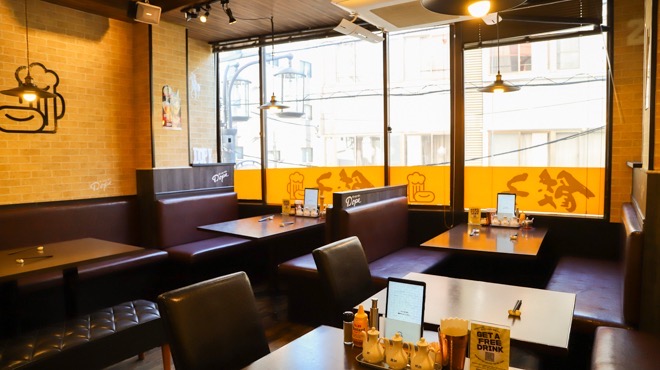 ▼ウッドを基調としたお洒落な雰囲気の空間。席の間隔が広く、ソファ席もあるので、ゆったりと食事を楽しめるのも魅力です♪