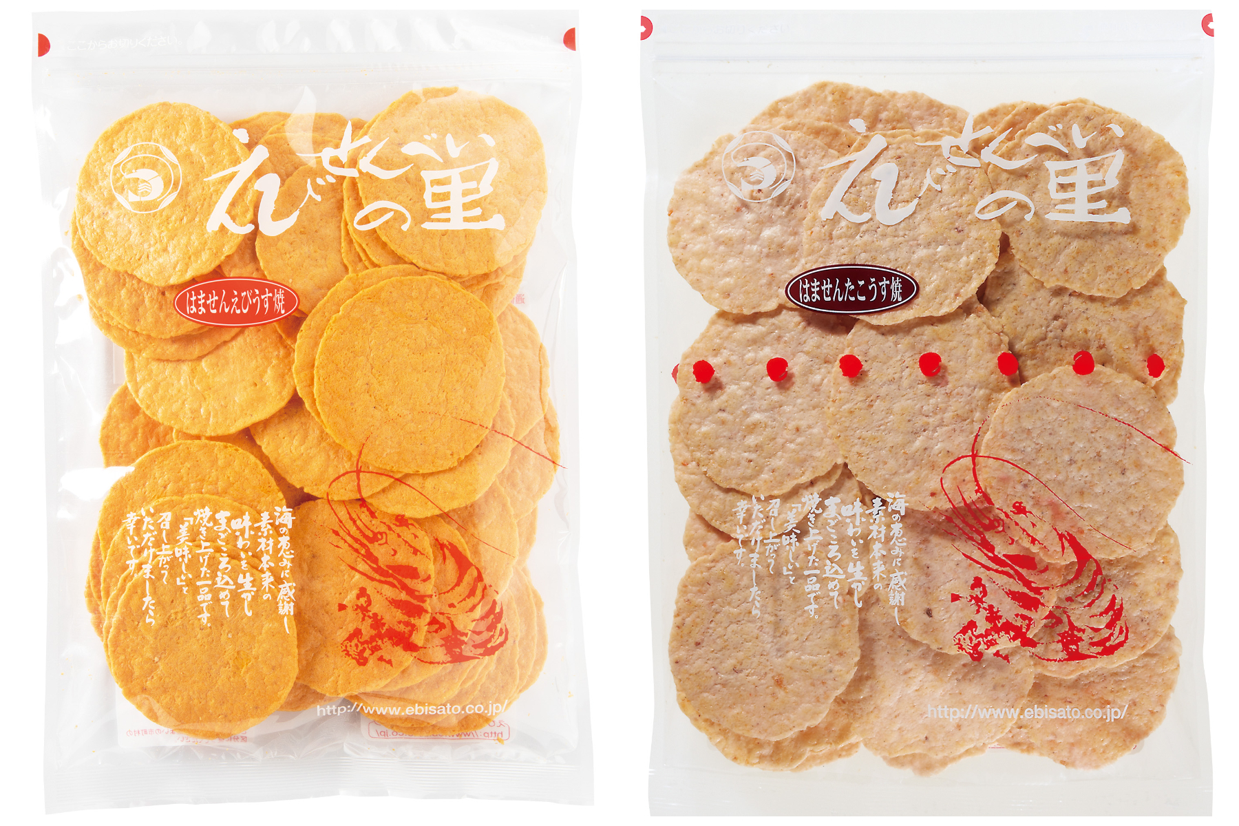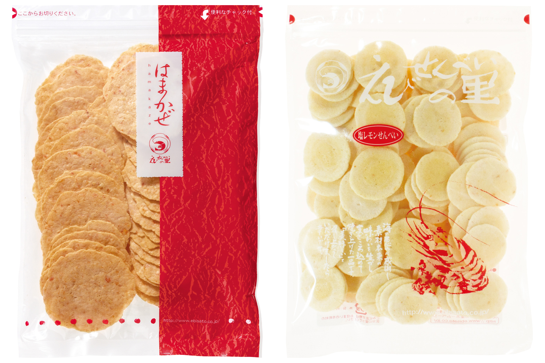 「えび、いか、たこ」をベースとしたオリジナルのおせんべいを販売。
