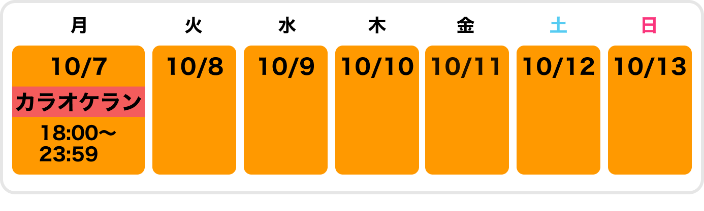 カラオケラン:2024/10/7(月)18:00〜23:59