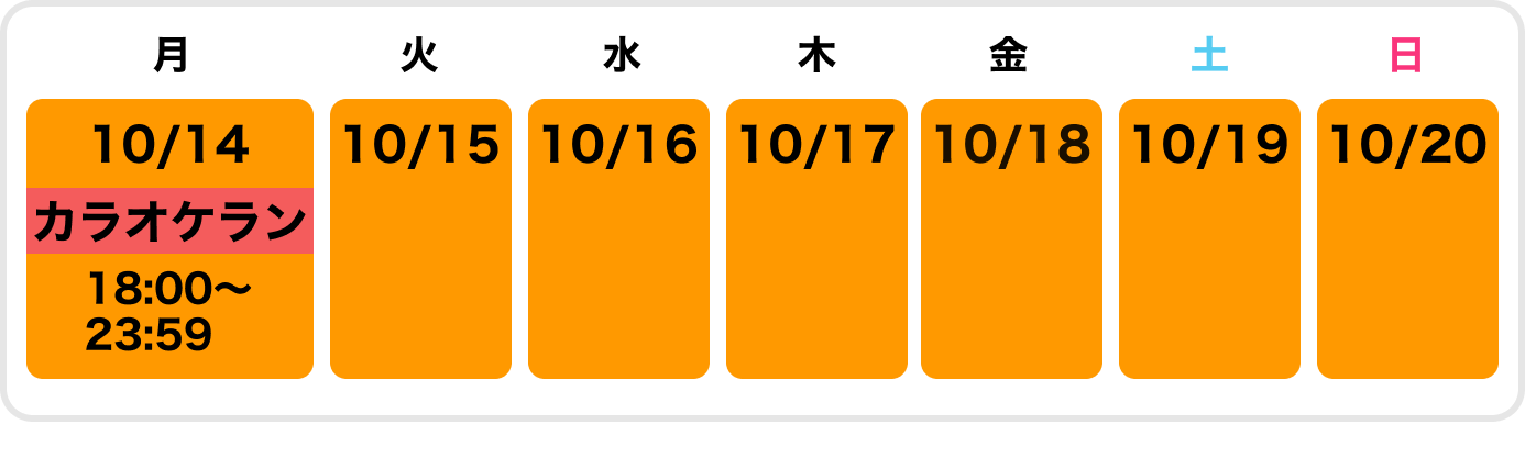 カラオケラン:2024/10/14(月)18:00〜23:59