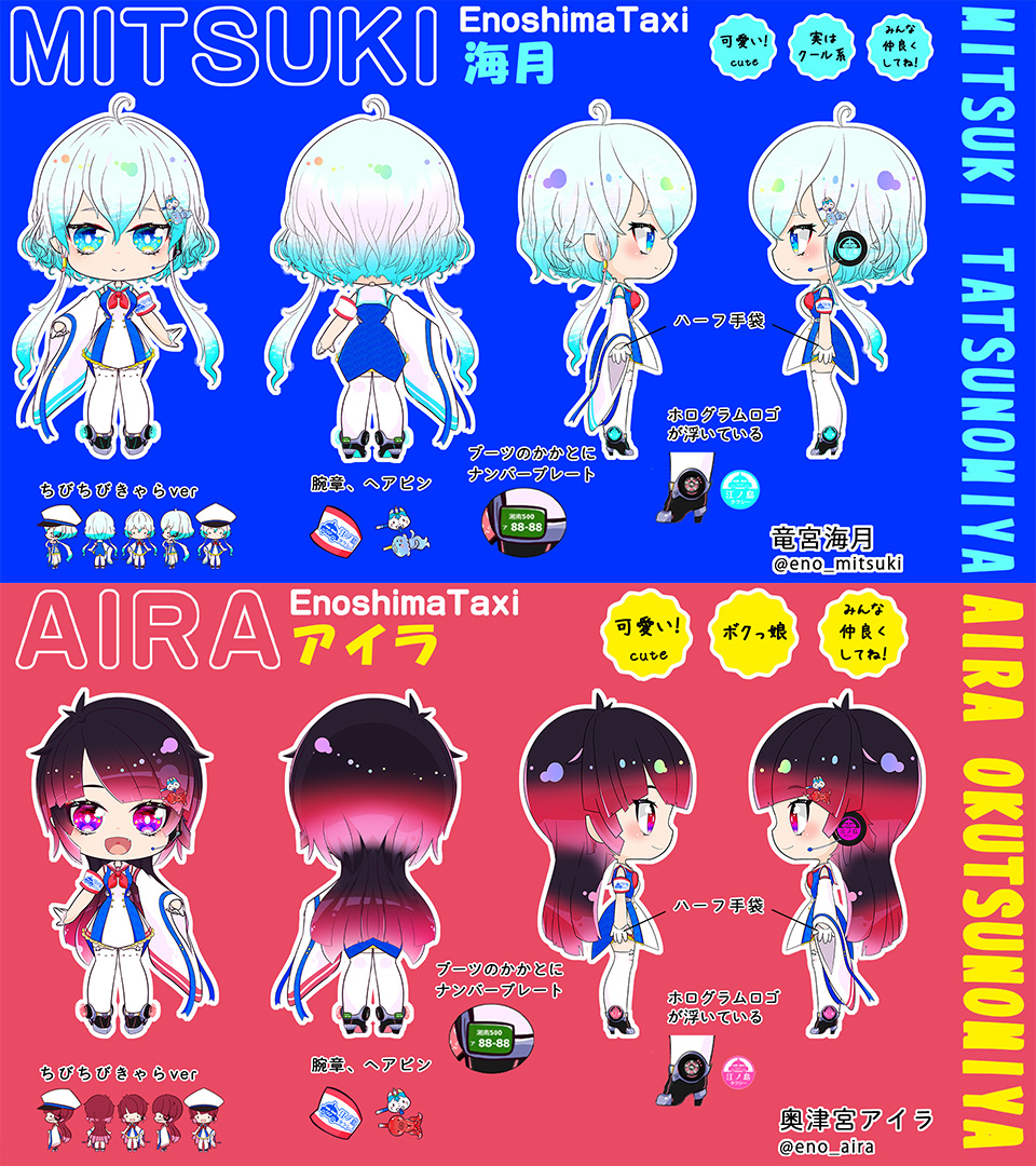 ・2023年8月上旬から8月下旬の間、江ノ島タクシー株式会社の本社入口に設置されている、#エノタクフリーペーパースペースの看板キャラクターとして掲載されます。