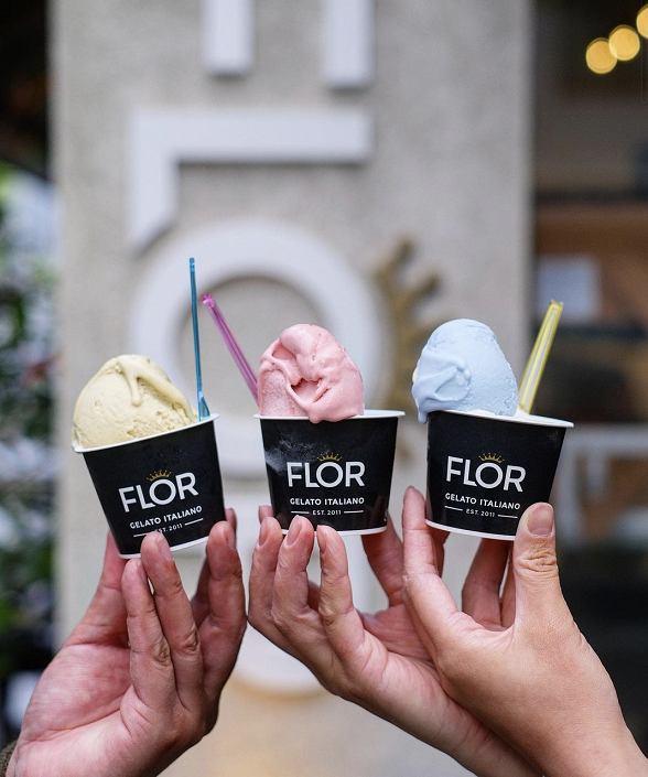 2011年にイタリアにて誕⽣。ローマに本店を構え、世界8ヶ国12店舗を展開する世界的ジェラートブランド『FLOR(フロア)』の⽇本1号店です。厳選されたイタリア直輸⼊の素材と、伝統的なレシピで毎⽇店内製造されるジェラートは、ローマの味を限りなく再現。素材の旨味を最⼤限に引き出した濃厚で且つ滑らかな味わいながら、スッキリとした後味のジェラートは、⽇本にいながらイタリアを感じられるということで⾮常に⼈気です。また、全国の百貨店での催事出店や、ケータリングにも⼒を⼊れており、2023/9/20(水)~9/26(火)には「伊勢丹新宿店」イタリア展に出店予定。関⻄で公演される舞台・コンサートでの出演者・スタッフへの楽屋ケータリングでも⾼い評価を得ております。