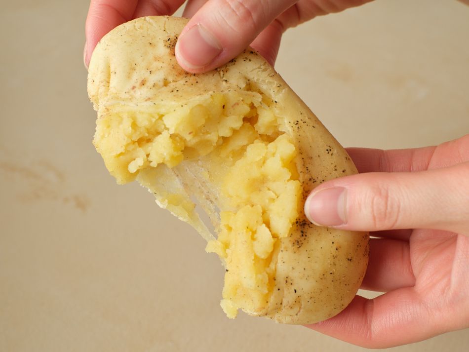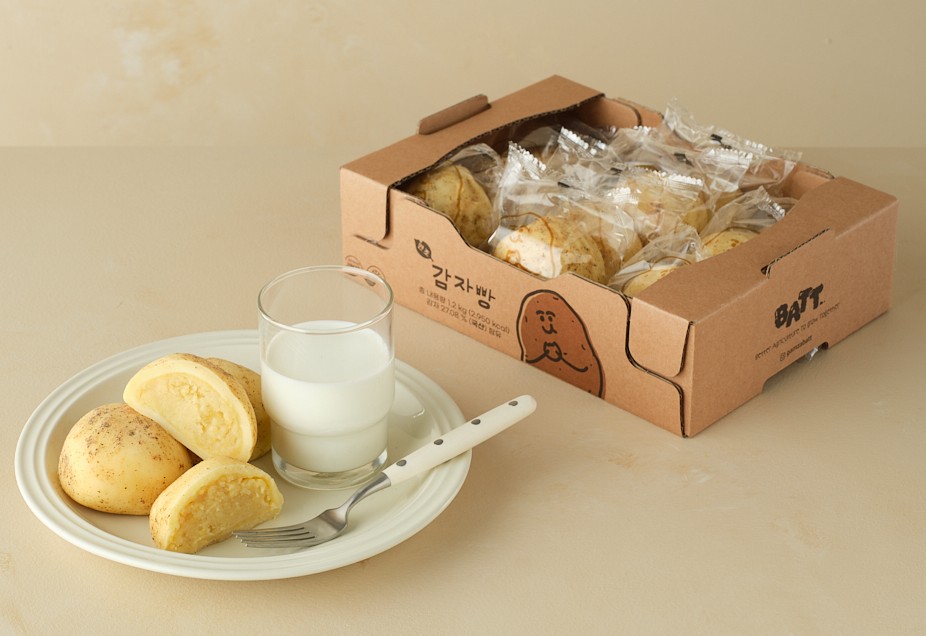 ▼表面にはきな粉や黒ごまがまぶされていて、畑から掘り起こしたばかりのじゃがいものようなビジュアル。米粉を使ったモッチモチな生地の中には、食感や味わいの違う韓国産じゃがいも3種をブレンドした、ほんのり甘いじゃがいもペーストがたっぷり♡ゆっくりと時間をかけてオーブンで焼き上げることで、素材本来の香ばしさと甘みをぎゅっと閉じ込めています♪