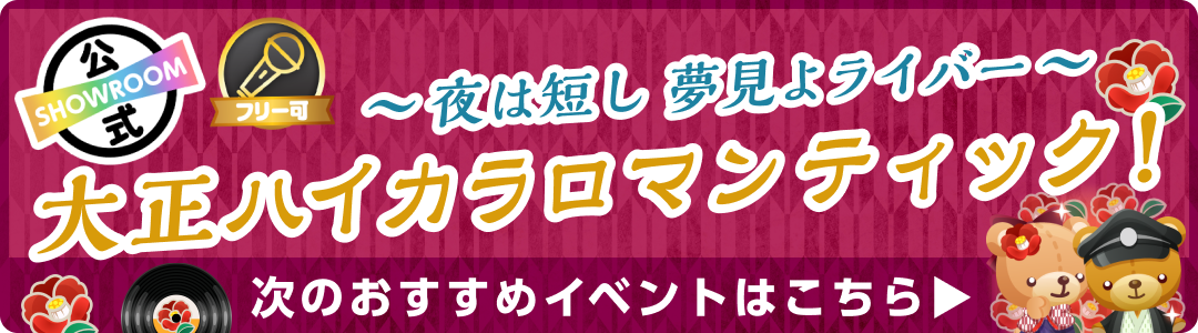 ・本イベントはSHOWROOM株式会社が運営しております。 ・下記注意事項およびSHOWROOM会員規約その他のルールを守って配信しましょう。 ・他者が嫌がるような迷惑行為はしないようにしましょう。 ・審査状況や選考基準に関するお問い合わせには基本的にお答えできかねます。 ・応募・審査通過等によって生じる権利を第三者に譲渡・質入等することはできません。特典の対象は獲得したルームの方のみです。特典を獲得したルームの方以外の方(グループ全体、グループメンバーなど)が特典を実施することは禁止といたします。 ・アバター、ギフティングアイテム等デジタルコンテンツの制作権を獲得された場合、SHOWROOM株式会社が作成する[ガイドライン]・[利用規約]に準じている作品の制作をお願いいたします。これらに違反している場合は、獲得したコンテンツをご利用いただけませんので十分ご注意ください。 ・本注意事項およびSHOWROOM会員規約その他のルールに違反した場合またはその他当社が不適切であると判断した場合は、応募及び結果を無効とし、または取り消す場合があります。 ・応募条件を全て満たさずにエントリーされた場合には、いかなる理由であってもエントリーを取り消し、特典の権利を無効とさせていただく可能性があります。 ・バーチャルライバーに関しては各人の世界観により定義された性別です。 ・イベントを途中離脱された場合には、いかなる理由であっても特典の権利を無効とさせていただきます。該当のライバーにギフティングされたリスナーへの返還、返金等もいたしかねますので、予めご了承ください。 ・金銭、物品、その他プレゼント(チェキ、お礼カードは除く)を視聴者に贈り応援を促進させる行為は禁止します。 ・重複アカウントによる応援は禁止です。重複アカウントによる応援ポイント分は発覚次第、減算を行います。なお、当サービスのセキュリティ上、対応や減算の仕組みの詳細に関しましては個別にご案内を差し上げておりません。予めご了承ください。 ・本アプリ内で開催されるキャンペーン・イベント・コンテスト等にアップル社、グーグル社は一切関係ありません。 ・天災、不慮の事故などのやむを得ない事情により特典履行が行えない場合、特典が変更・補填・中止となることがございます。予めご了承ください。 ・万が一、前項に定める事由による特典履行が変更、中止となった場合、その他本イベントの応援ポイントが取り消しされた場合であっても、SHOWROOM株式会社は当該応援ポイントにかかるデジタルコンテンツまたはShow Gold、現金その他の返還はいたしません。予めご了承ください。 ・イベント終了後に減算されてポイント未達成になった場合、特典は取り消しとさせていただく場合があります。 ・ランキングが関わるイベントの場合、グループメンバー同士(グループアカウント、個人アカウント問わず)、または、イベント参加者の関係者(マネージャー・プロデューサーなどの直接的な利害関係者)の応援はコメントのみ可能とし、有料ギフト・無料ギフトによる応援は禁止とさせていただきます。 ・公式ライバーの方が報酬のある特典を獲得された場合は、所属オーガナイザー・所属事務所等にご確認の上ご対応ください。