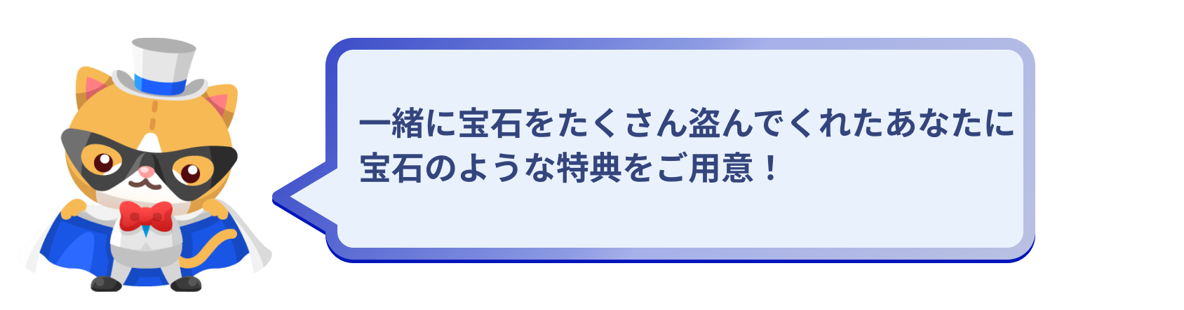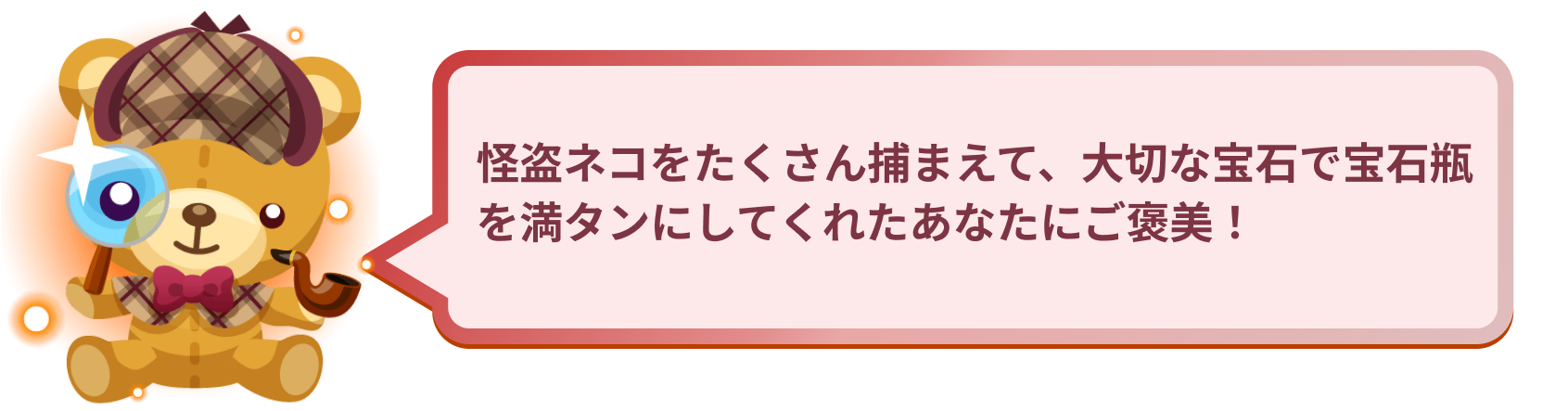 ※「宝石を盗む」「怪盗ネコを捕まえる」等の表現がありますが、怪盗ネコ、名探偵クマギフトがギフティングされた場合でも、既に獲得しているギフトの個数やptに影響はありません。