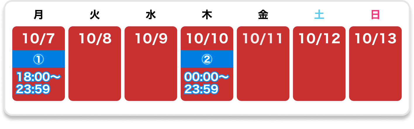 ・2024/10/7(月)18:00〜10/8(火)02:59まで