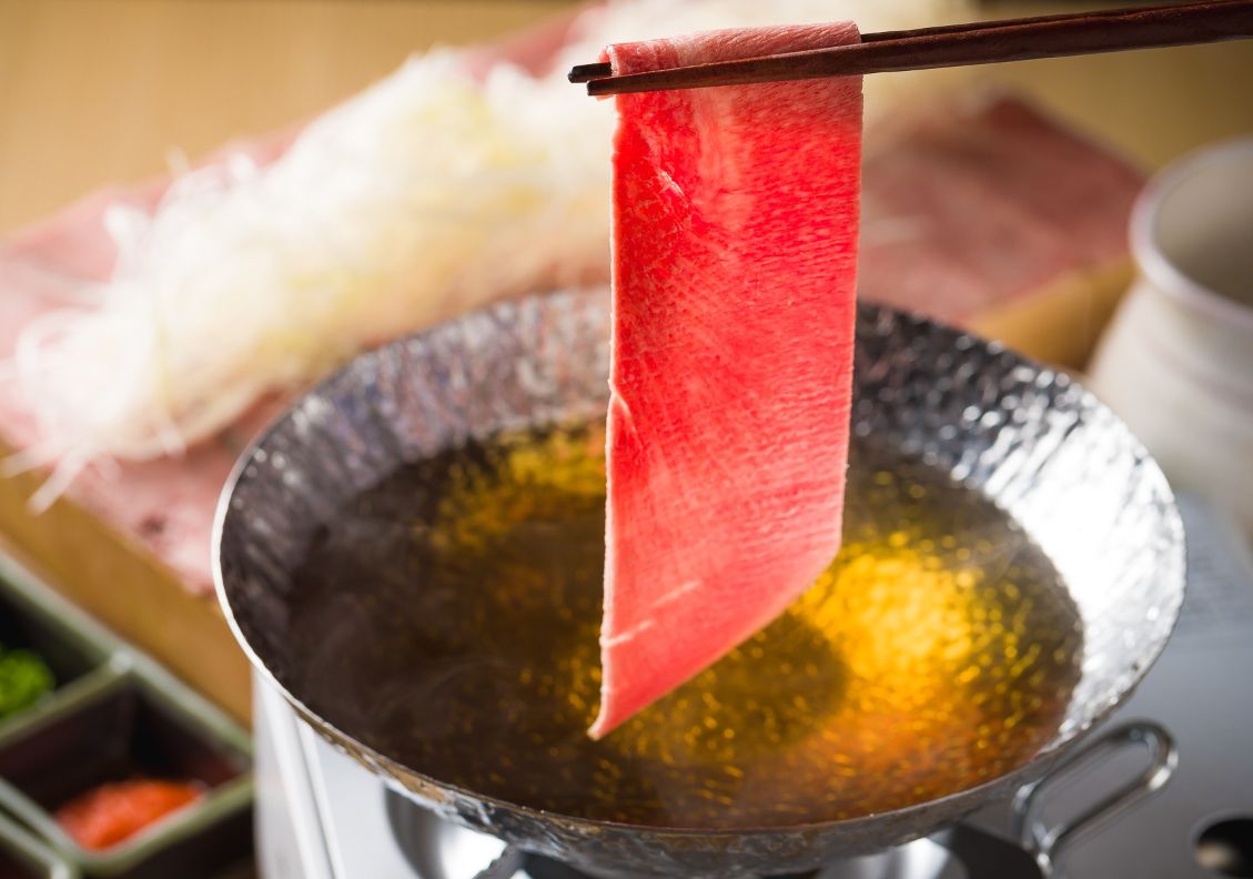 ▼極薄にスライスされた牛たんを熱々の出汁に5秒だけくぐらせて味わう「5秒生たん葱しゃぶしゃぶ」。牛たんと香味葱の相性は抜群です♪