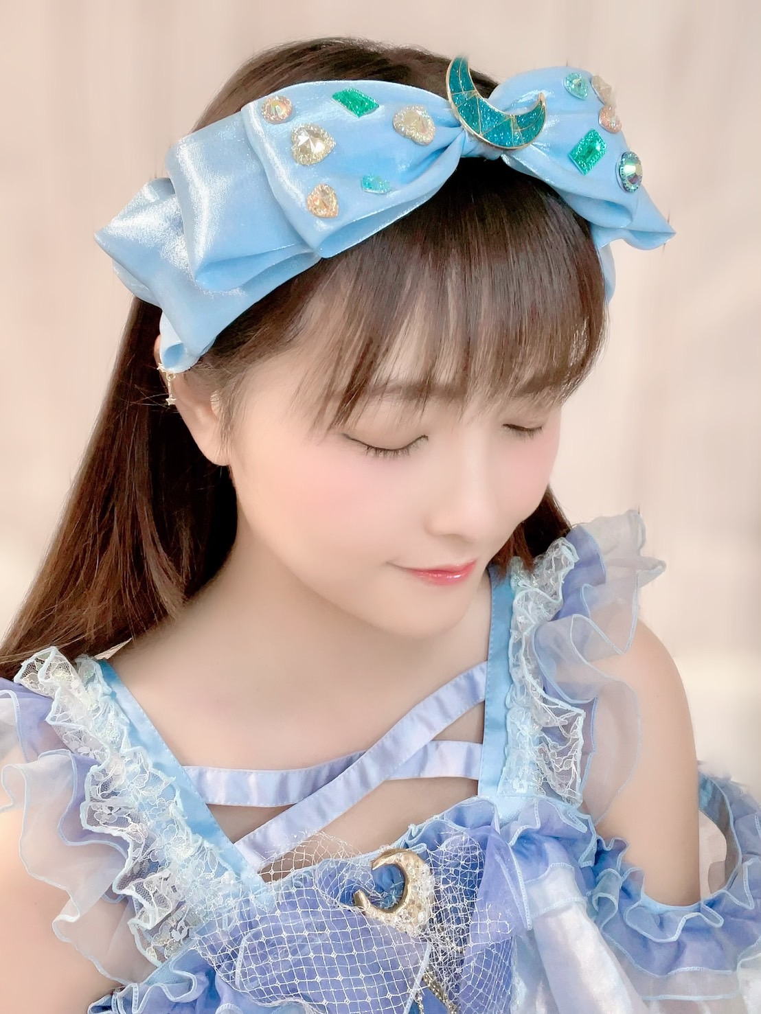 ▼人気ライバー・月島ほたるさんのヘアアクセ。高級感溢れるサテンのリボンにビジューをふんだんに使い、きらびやかな印象へとアップデート♡リボンの可愛らしさが華やかさを増して、ONするだけで一気に女の子らしさがMAXになれます♪