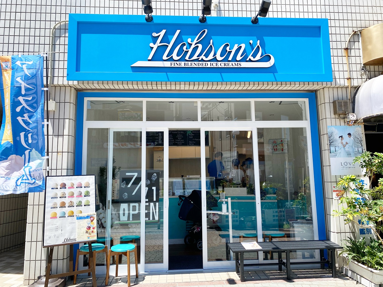 『Hobson's』は、1985年にアメリカ西海岸サンタバーバラから上陸したプレミアムアイスクリームショップのパイオニア。メニューは、アイスクリームとクレープともに季節に合わせて開発されているので、1年を通して多くの方に愛されています。バニラやチョコレート、ラムレーズンといった定番フレーバーはもちろん、厳選されたフレーバーにフルーツやお菓子を専用マシンでミックスし、自分だけのオリジナルアイスクリームができるブレンドアイスクリームも絶大な人気を誇っています。