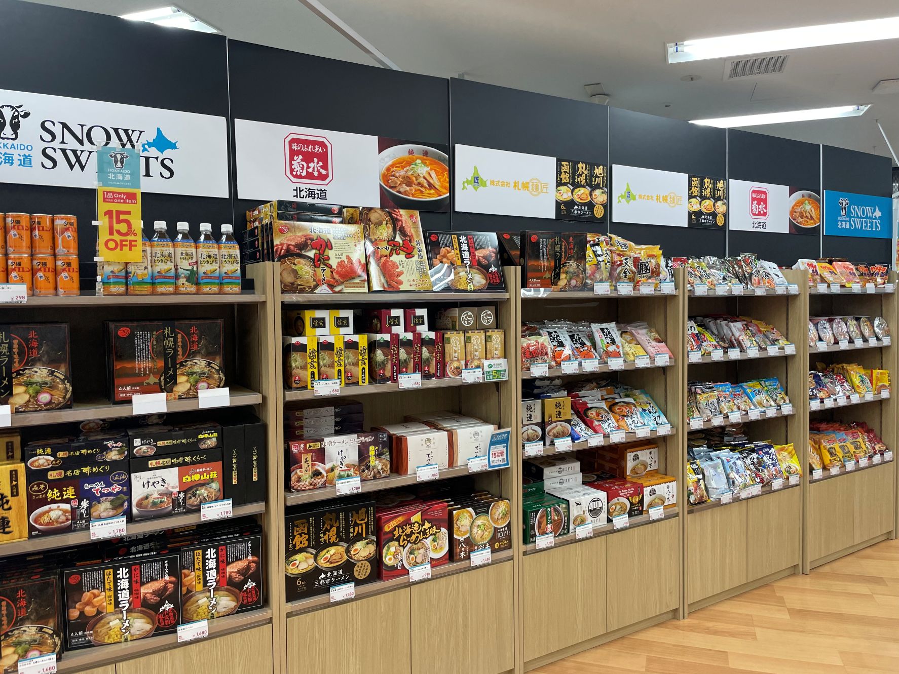 花畑牧場の「生キャラメル」や北見鈴木製菓の「ペパーミントチョコ」、雪のようなくちどけで人気の新感覚ショコラ「雪花青」、カルビーの「じゃがポックル」をはじめとする銘菓から、名店GARAKUの「スープカレー」、地元の人気店をモチーフに北海道産の食材を使用した「ビーフカレー」、ジビエの変わり種カレーといった約30種のレトルトカレーなど、目移り必至のラインナップを誇っています。