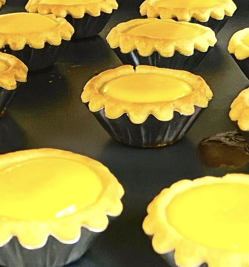 香港のメロンパン「ポーローパオ」を模した可愛いオブジェサインが印象的な同店では、外側サクサク&中はしっとりの「ポーローパオ」、「ポーローパオ」の中にバターをサンドした「ポーローヤオ」、甘辛く煮たチャーシューをサンドした「ポーローチャー」をはじめ、弾力のある生地の中にほんのり甘いココナッツとバターが入った「トリテールパン」、ジューシーなソーセージをふわふわのパンで巻いた「ソーセージパン」、サクサククッキー生地の「エッグタルト」などなど、個性あふれる香港発のパンとデザートが所狭しと並べられています。