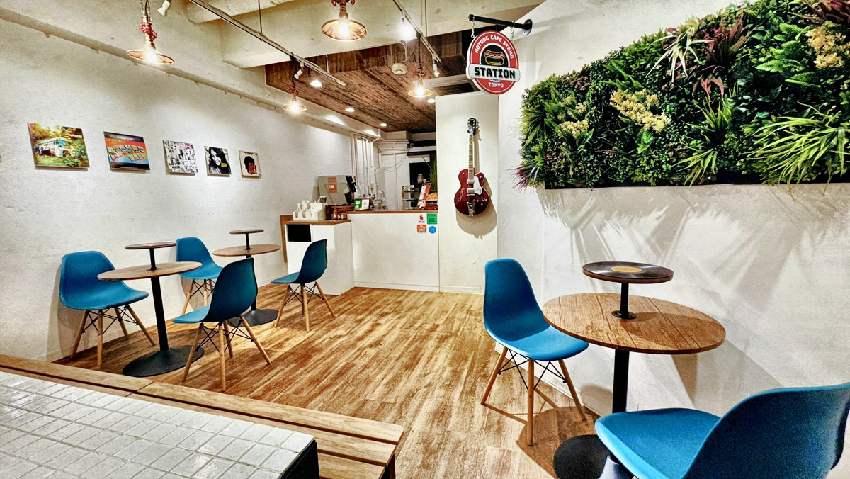 ▼京急・大森海岸駅近くの第一京浜国道沿いに佇む『STATION東京』。店内は白を基調にウッドテイストを取り入れ、レコードや年代物のギターなどを展示してアメリカ西海岸の雰囲気を演出しています☆