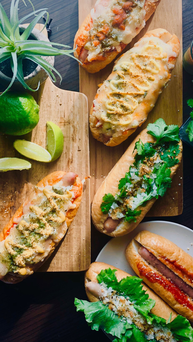 ▼ホットドッグは、チーズとバジルを使った「ステーションドッグ」(750円)をはじめ、マヨネーズ、マスタード、3種類のチーズで味付けした「メガチーズドッグ」(830円)、パクチーをトッピングしライムを搾って食べる「パクチードッグ」(720円)など9種類をご用意しています♪