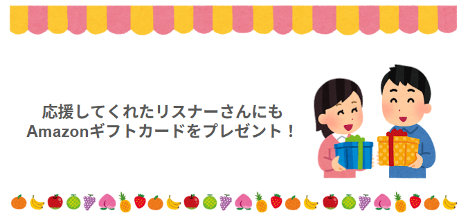そして今回はなんと、応援してくれたリスナーさんにも、Amazonギフトカード(合計14,000円分)をプレゼントしちゃいます♡